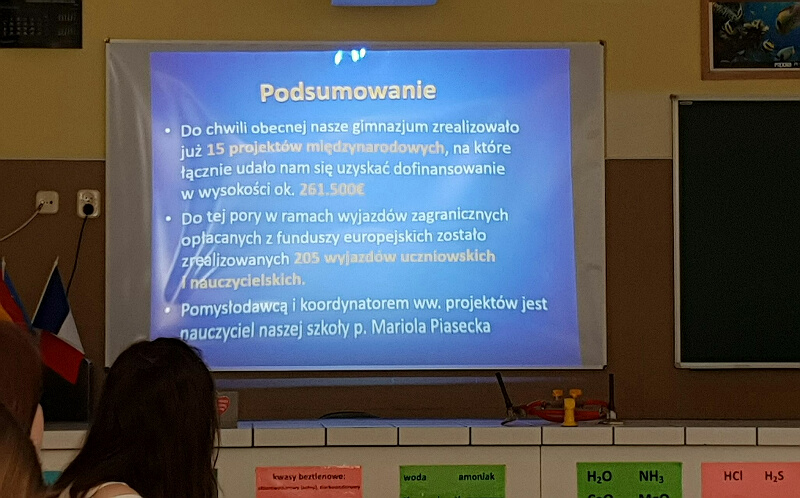 Uczniowie z klubu europejskiego, którego opiekunką jest nauczycielka Olga Pawnuk – przygotowali pokaz multimedialny i zaprezentowali dorobek szkoły w realizacji programów europejskich. Ich koordynatorem jest nauczycielka Gimnazjum Mariola Piasecka.