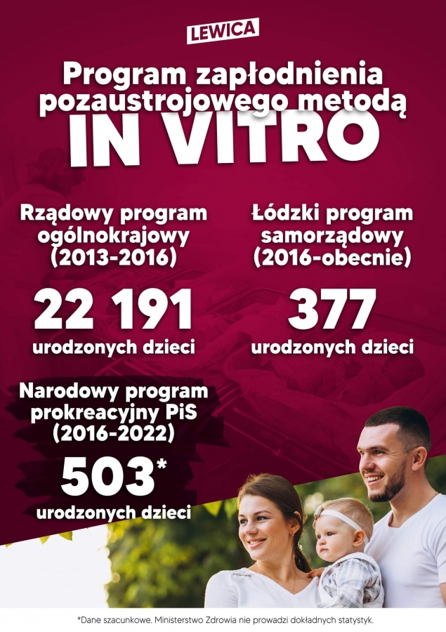 Ogólnopolski program in vitro dla wielu par był jedyną szansą na posiadanie dzieci, niestety w 2016 roku rząd PiS pogrzebał nadzieje tysięcy niedoszłych rodziców, likwidując program z powodów ideologicznych. W miejsce programu in vitro powołano Narodowy Program Prokreacyjny, który naukowe metody zastąpił przestarzałymi przesądami bez naukowego oparcia. Samorządy robią co w ich mocy, ale to za mało, żeby pomóc wszystkim, którzy pragną szczęścia, dlatego politycy Lewicy postanowili wyjść im naprzeciw i złożyli projekt ustawy, którzy ponownie ustanawia krajowy program in vitro, finansowany z budżetu państwa.
